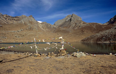 Am folgenden Tag geht es zu den nordöstlich von Brage gelegenen Ice-Lakes, zwei idyllischen Bergseen in 4 600 m Höhe. Der Aufstieg über mehr als 1 000 m ist anstrengend, die grandiosen Ausblicke besonders auf Annapurna III (7 555 m) und Gangapurna (7 454 m) lohnen jedoch die Mühen. Darüberhinaus ist dieser Ausflug, für all die Trekker, die den Thorong La noch vor sich haben, eine empfehlenswerte Akklimatisationstour. Die Ice Lakes sind auch unter dem Namen Ngawal-See bekannt.