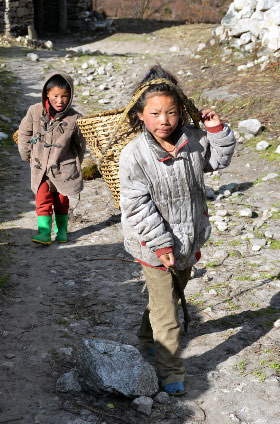 Unsere nächste Station ist das nahezu menschenleere Gurungdorf Bharjang (2600m). Die Häuser sind in der typischen Bauweise der Gurung aus unbearbeiteten Steinen errichtet. Lunch erfolgt in einem Restaurant am südlichen Anfang von Bharjang.