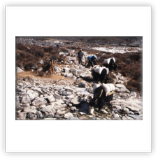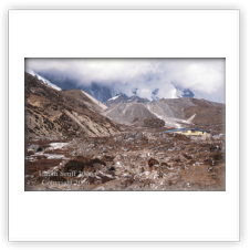 Nach drei Stunden erreichen wir um 16 Uhr die jetzt völlig von Wolken verhangene kleine Alp Chukung in 4 730 m Höhe. Aus dem üblichen Spaziergang wird leider nichts, die Sicht beträgt kaum noch zwanzig Meter.