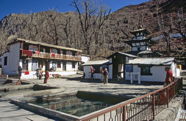 Nach sieben Stunden ist das Tagesziel Muktinath in 3 760 m Höhe erreicht. Wir wohnen im ziemlich voll besetzten Hotel North Pole, einem recht ordentlichem Haus.
