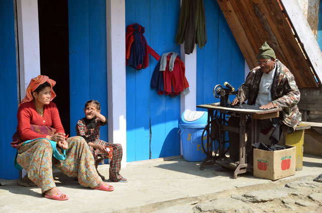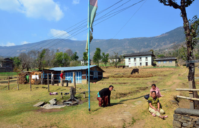 Von Deurali führt die ca. 10km lange Strecke mehr als 1000m zwar recht steil, aber ohne Schwierigkeiten bis zur Talsohle abwärts. Nach fünf Stunden bei Sonnenschein und 25°C ist das nette Dorf Kinja mit seinen sehr freundlichen Bewohnern in 1620m Höhe erreicht. Der Ort gefällt uns so gut, dass wir auf das geplante Tagesziel Sete verzichten und beschließen, hier zu übernachten.Den späten Nachmittag verlebe ich im Dorf mit den netten und kontaktfreudigen Bewohnern.