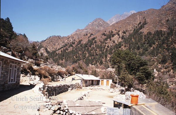Der kleine Ort in der Senke des Gokyo-Tals liegt malerisch im Wald direkt am Ufer des Dudh Khosi auf einer Höhe von 3 670 m.