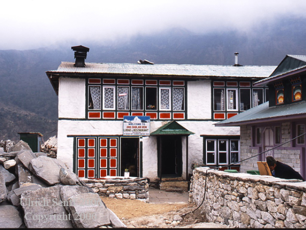 Nach einer kurzen Besichtigung der Gompa suchen wir eine Übernachtungsmöglichkeit. Der zweite Versuch klappt. Die „Ama Dablam Lodge“ ist klein aber ordentlich.