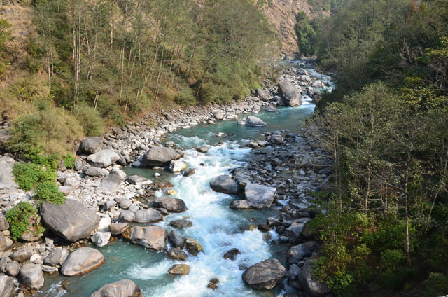 Der Abstieg über viel Geröll vom Tag zuvor setzt sich fort. Wir erreichen bald den tiefsten Punkt der gesamten Tour mit 1488m Höhe und überqueren auf einer langen Hängebrücke den Deku Khola. Danach geht es steil durch Waldgebiet aufwärts bis Jubhing (1650m).Auch der weitere Weg führt beständig, bisweilen recht steil bergauf. Wir durchqueren Karikhola in 2040 m Höhe, ein Dorf mit vielen Unterkünften, dass sich ca. 1,5 km hinzieht.Lunch erfolgt im kleinen Dörfchen Bupsa (2150m). Über Serpentinen geht es zum höchsten Punkt des Tages, dem Kari La auf immerhin 2940m Höhe. Trotz beginnender Dämmerung wandern wir weiter, wollen das Dorf Paiya erreichen. Der Weg ist weitaus länger als gedacht, aber glücklicherweise problemlos. Mit Stirnlampen und bei völliger Dunkelheit endlich um 19.30 Uhr nach 14 Kilometern Ankunft in Paiya. Ich bin völlig down.