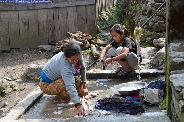 Ich habe wieder tief und traumlos geschlafen. Nach dem üblichen kräftigen Frühstück mit Tibet Bread und Omelett mache ich einen kleinen Rundgang durch den schönen, touristisch stark frequentierten, direkt am Marsyangdi Fluss gelegenen Ort Tal. Der Regen ist endlich vorbei. Mir tun nur die Trekker leid, denen die Annapurna-Runde noch bevorsteht. Diese Saison war wettermäßig wirklich ganz schlecht. Wir treffen auf viele Wanderer, die vor dem Thorong La auf Grund der Schneemassen wieder umgekehrt sind. Ich hatte damals, vor fünf Jahren ein Superwetter.
