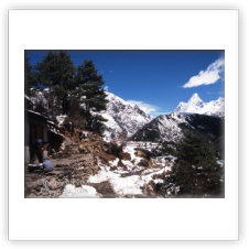 Glücklich darüber, keine Blessuren davongetragen zu haben, machen wir in Phunki Drangka Pause, sitzen am Tisch eines kleinen Freiluftrestaurants und genießen bei ca. 15° C das sonnige Wetter. An die Mühen des Abstieges denke ich nicht mehr. Im Khumbu sollte man vergangenes schnellstens vergessen und sich auf die Zukunft einstellen. Jede Minute kann neues, unvorhergesehenes bringen, dass gemeistert werden muss.