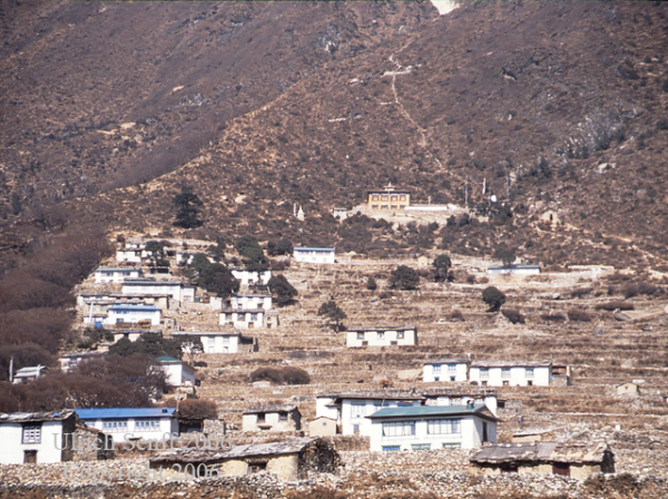 Am Nachmittag mache ich einen ausgedehnten Spaziergang durch dieses typische Sherpadorf, dessen, von Kartoffeläckern umgebene Häuser in gebührendem Abstand voneinander liegen.