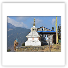 In der Nacht schlafe ich nur wenig. Grund hierfür ist die wegen der offenen Feuerstelle schlechte Luft. Auch liege ich im Schlafsack auf der blanken Holzpritsche und irgendwann schmerzen alle Knochen. Irgendwann finde ich in der Dunkelheit dann eine Decke zum Unterlegen. Der Toilettengang nach dem Aufstehen um 6 Uhr ist wieder einmal mit Klettern verbunden. Glücklicherweise haben Gewitter und Hagel ausgespielt. Es ist klar und sehr kalt. Das Frühstück besteht wie üblich aus Nudelsuppe und Tee. Wir starten um 07:25 Uhr. Teilweise führt die Strecke recht steil über Gerölltreppen bergauf. Ich bin jedoch gut drauf und habe keine Probleme. Nach einer knappen Stunde erreichen wir um 08.20 Uhr das Dorf Sanam auf 2800m Höhe. Der Ort mit seiner Gompa hat eine sehr schöne Lage. Die weitere Wegstrecke bei Sonnenschein und in einer großartigen Landschaft ist moderat. Hin und wieder müssen jedoch schwierige Abstiege über Geröll gemeistert werden. Um 10:45 Uhr ist das Dörfchen Tiun in 2500m Höhe erreicht. Im Gastraum einer einfachen Unterkunft Teepause. Das Betreiberehepaar ist selbst für diese Region ganz besonders freundlich. Wir beschließen, bereits hier auch unseren Lunch einzunehmen. Während die Frau des Hauses den Dal Bhat zubereitet, zeigt mir ihr Mann die kleine aber hübsche Monastry. Natürlich müsste auch hier vieles getan werden und ich spende 500 Rupies, ca. 4 Euro. 11:45 Uhr wandern wir weiter bei 20°C und immer noch Sonnenschein. Die Strecke führt abwärts, ist bis auf ein paar schwierige Abstiege gut machbar. Nach einem schönen Tag erreichen wir um 15 Uhr das „Namaste Guesthouse“ am oberen Ende des Dorfes Gudel in 1930 m Höhe. Ich trinke Milchtee, wechsle erstmals meine Kleidung und fühle mich wie neugeboren. Am Spätnachmittag machen wir einen kleinen Rundgang durch das mit 3000 Einwohnern recht große und sehr schön gelegene Dorf. Obwohl zum Solu Khumbu gehörend, leben hier ausnahmslos Rai. Rai sind Hindus. Ich wasche ein paar Kleidungsstücke an der Wasserstelle, genieße danach im Gastraum den Abend bei einer Flasche Bier und einer Riesenportion Momos. 21 Uhr ist Nachtruhe.